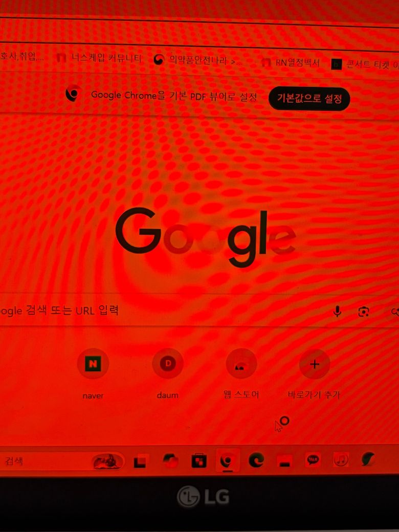 노트북 켤때 로딩 화면 중에는 괜찮은데 바탕화면으로 전환되자마자 빨갛게 변해요 ㅠㅠㅠㅠ 전체화면 다 이거 어떻게 된건가요? 수리해야하나요?