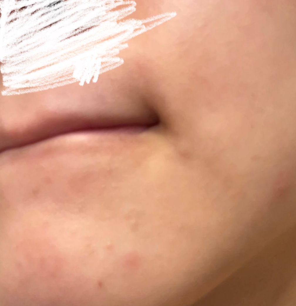 아래 첨부한 사진처럼 붉은 트러블이 올라왔는데, 통증이나 가려움은 없습니다. 알러지처럼 피부가 튀어나왔고, 일반적인 여드름처럼 피지가 있는 것 같지는 않아보입니다. 이런 트러블은 뭔가요?
