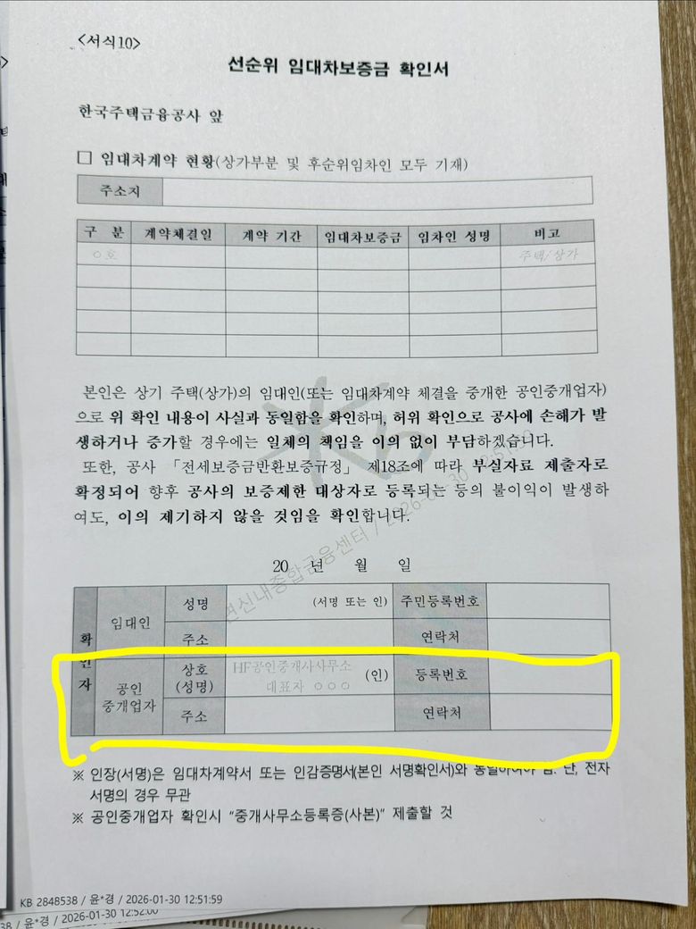 하단 계약한 부동산 내용은 제가 계약한 부동산 사인만 있으면 되는지