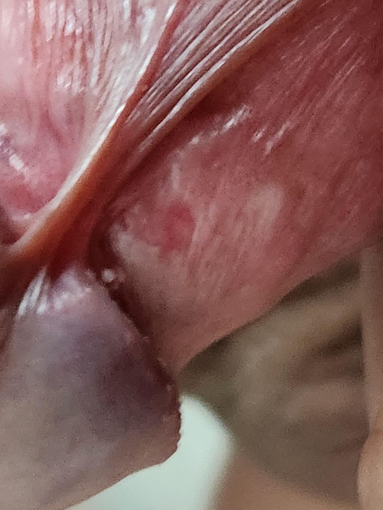 통증,증상 아무것도 없습니다 이건 뭘까요? ㅠㅠ 마지막 관계는 한달넘었습니다 요즘에 뭐가 보이기만 하면 불안하네요...... 사진에 보이는 붉은게 뭘까요? 매독 궤양일 가능성도 있나요?