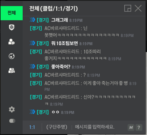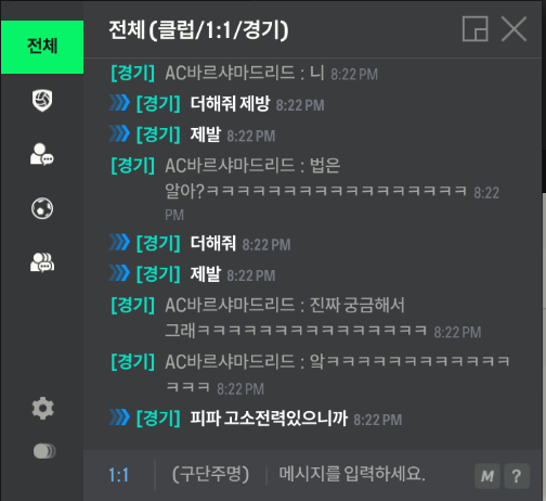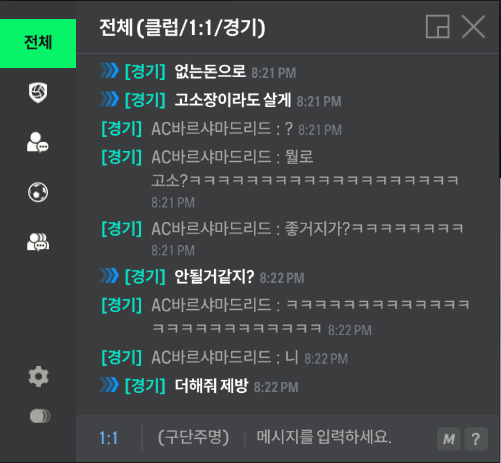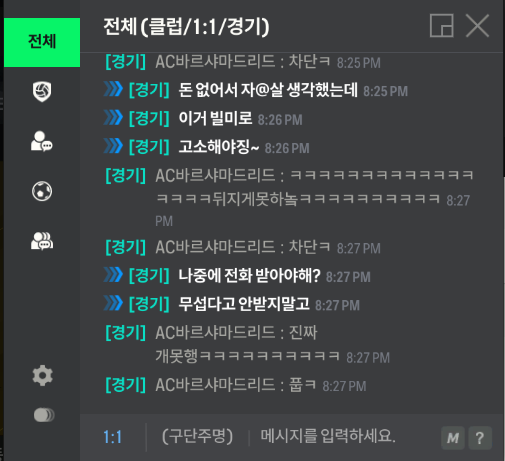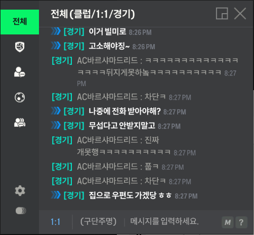 상대는 저의 어머니가 돈이 없어 지새끼한테 만원 한장 못준다, 못배워처먹었다 그리고 말끝마다 좋거지 거리면서 돈이 없어서 게임 내의 팀이 좋지 않다는 식의 말을 남발하였습니다
