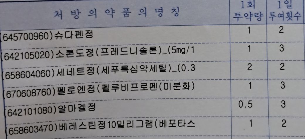 복용중인 약은 사진과 같아요.