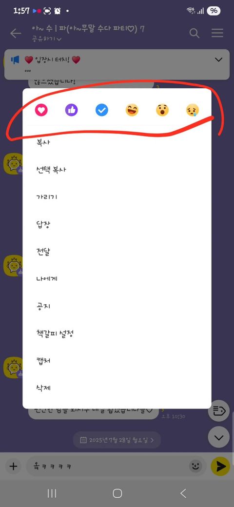 최근 카톡에 추가된 공감 기능에도 기간제한이 있다는 사실 알고계셨나요들?🤭 뭐를 누르면 버튼이 활성화 되는지 안되는지를 표현하기 위해 영상으로 찍어왔지만 이 앱이 아직 영상까지는 못올리는군요?😂😂😂 그래서 아쉬운대로 캡쳐본으로 대신 하오니 양해 바랍니다🙏