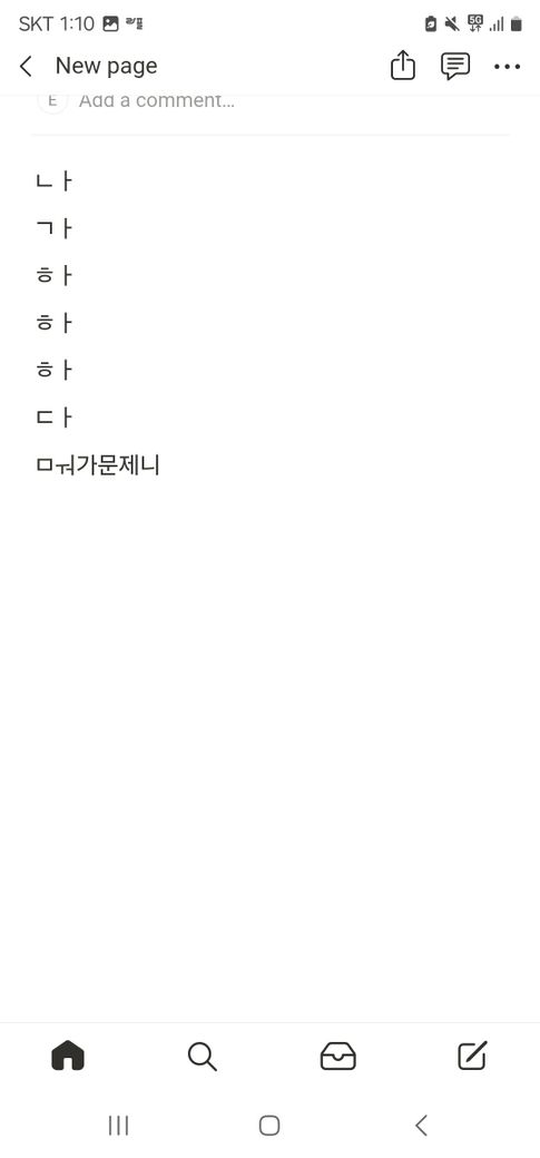 핸드폰 노션 오류 왜 이러나요... 계속 각 행에 첫 글자를 쓸 때 자음과 모음이 합쳐지지 않아요