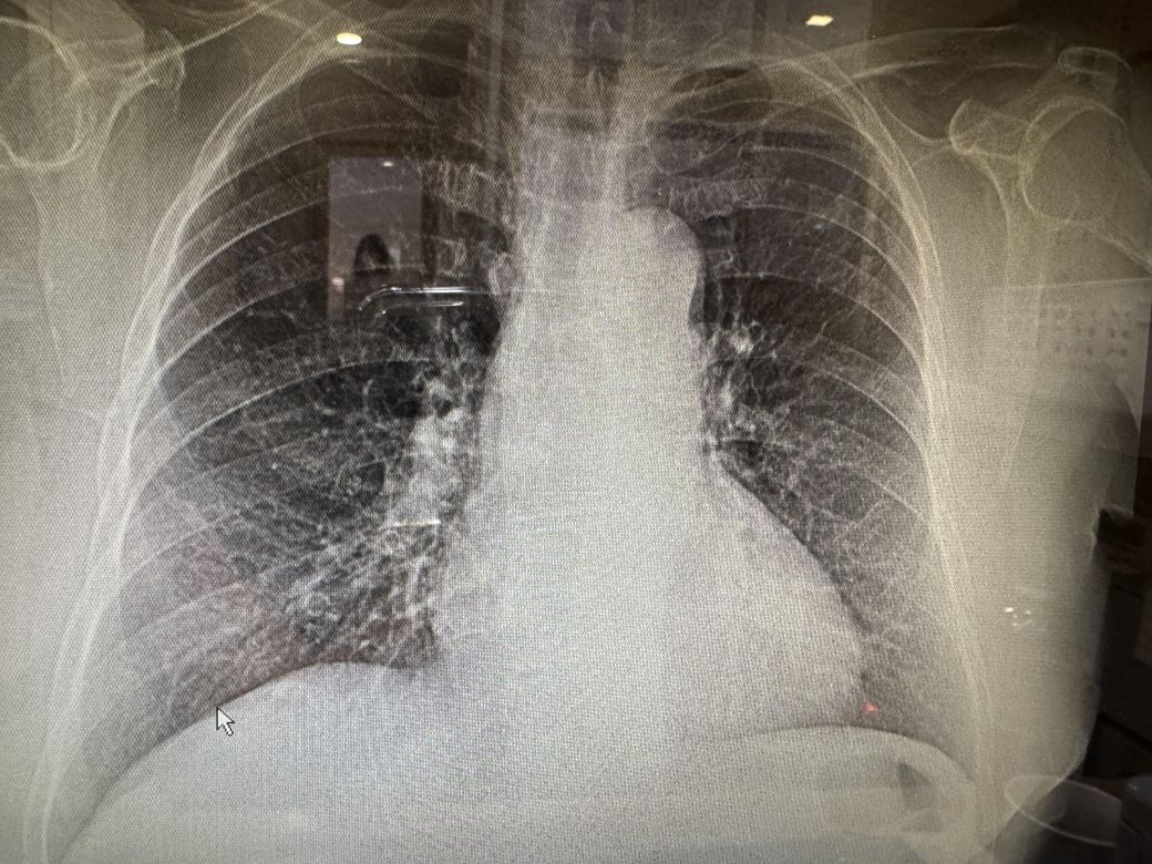 사진을 PACS 상에서 직접 판독을 해야 정확하기에 명확히 진단을 내리기 어려우나 양측하단의 음영 증가가 있는 것으로 판단 됩니다. 폐부종 등이 있지는 않은지 내과 전문의 진료를 받아보시기 바랍니다.