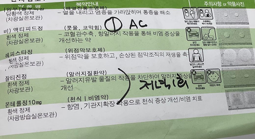 현재 사진에 포함된 잘티진정이 포타스틴오디정과 그 성분군이 중복되기 때문에 같이 복용을 하지 않도록 말씀을 하신 것으로 보입니다. 다만 두 가지의 항히스타민제를 같이 복용하면 안되는 것은 아니고, 굳이 중복해서 복용할 필요가 없기에 그렇게 말씀을 한 것으로 보입니다.