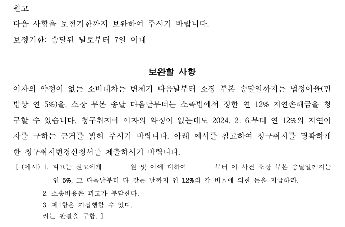 대여금 전자소송 보정권고 내용 문의 드려요