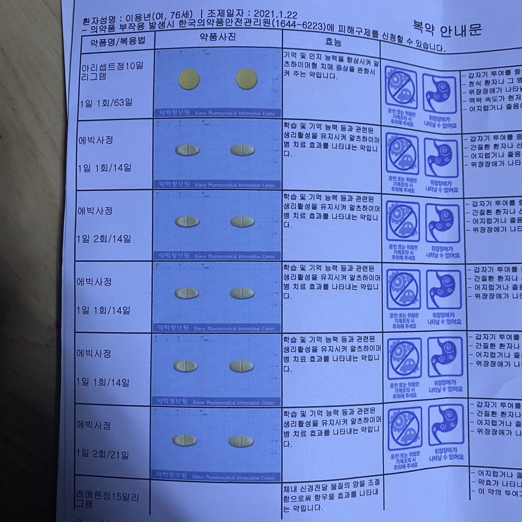 할머니가 알츠하이머가 있으셔서 기억력약과 항우울제랑 약 복용중이신데