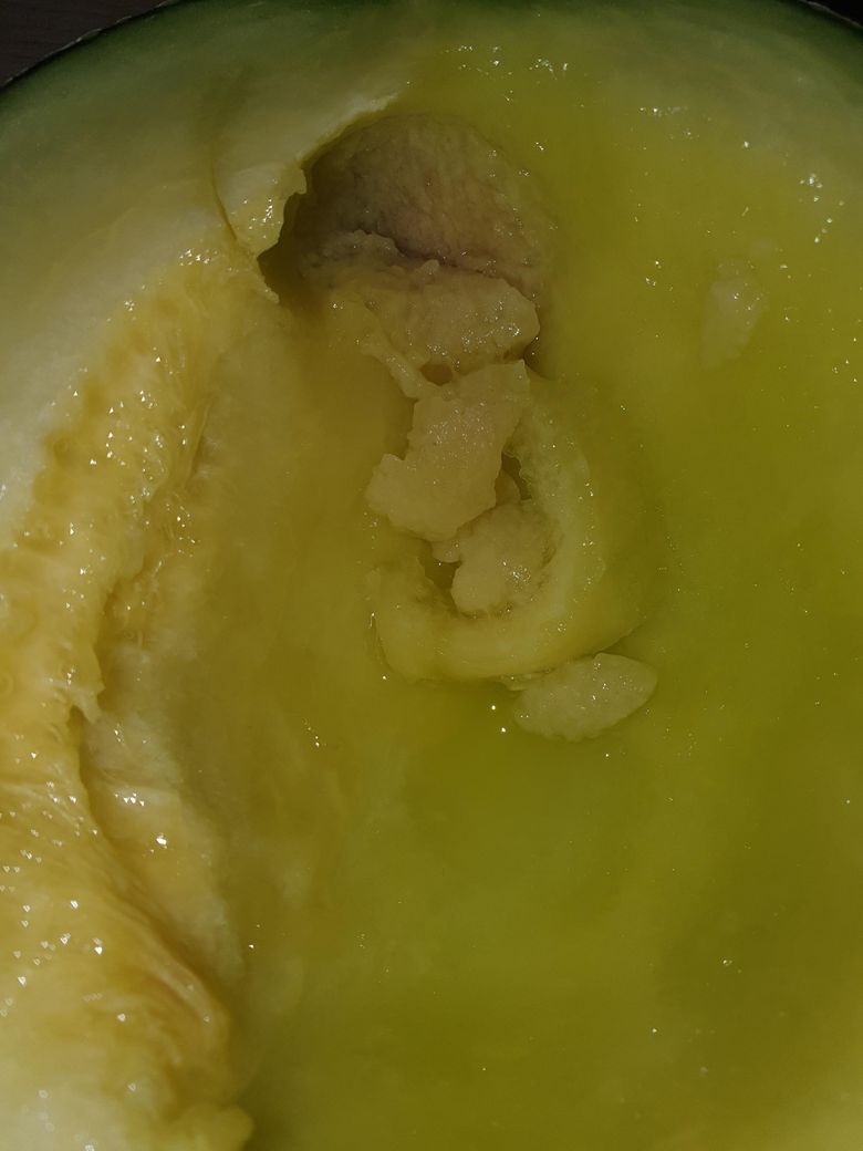 씨앗부분이 물러져있는걸로 보이는데 신선한 멜론은 씨앗부분이 단단해요