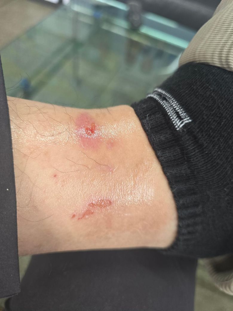 저번에 오른쪽발목에도비슷하게생겨서 병원가서 약처방받고 약바르고 약먹고없어졌는데 이번에는 왼쪽발목에 생겼어요 아프지는않고 조금 간지러움정도 못참을정도는아님 습간적으로 긁어서이런건지 모르겠어요 약이남아서 일단먹고 약바르고있는데