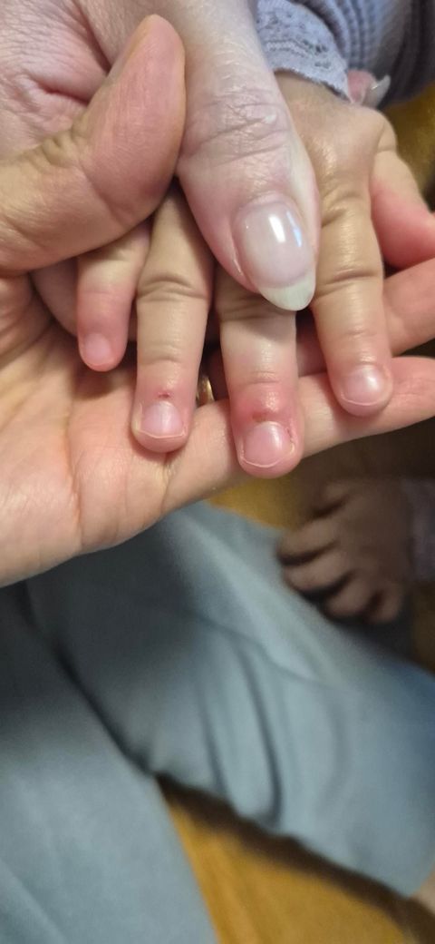 냉찜질을 해주시고 아이가 울며보채거나 손가락 움직임에 제한이 있다면 소아과에서 진료를 받아보시는 것을 권해드립니다.