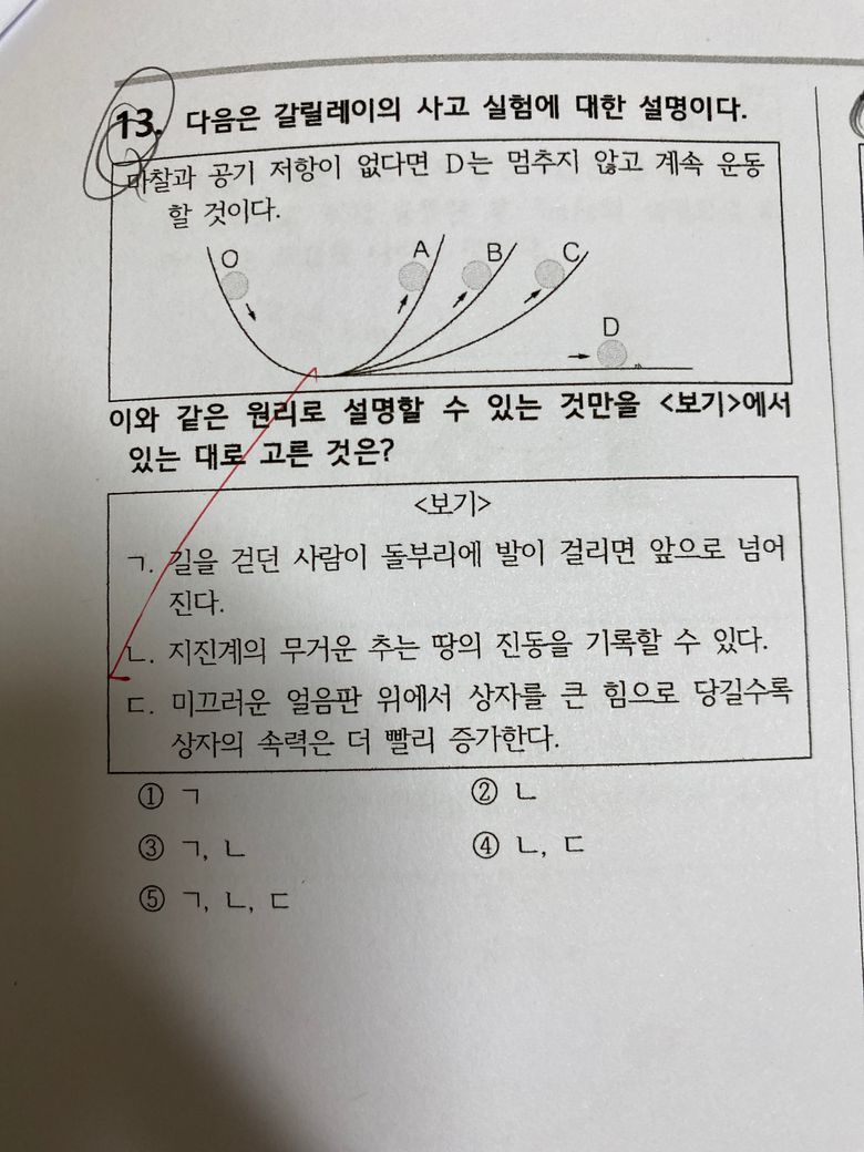 즉 이 문제는 보기 중에 ‘관성’과 관련된것들을 찾는 문제입니다.