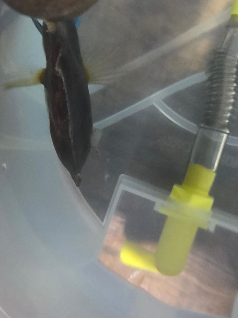 애완물고기 디스커스 상처? 가 생긴건지 솜뭉치 같은게 붙어있고 꼬리가 상해서 찢어졌어요