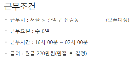 잡코리아나 알바몬 같은곳을 보면위와 같이 근무 조건에 급여가 나와있더군요