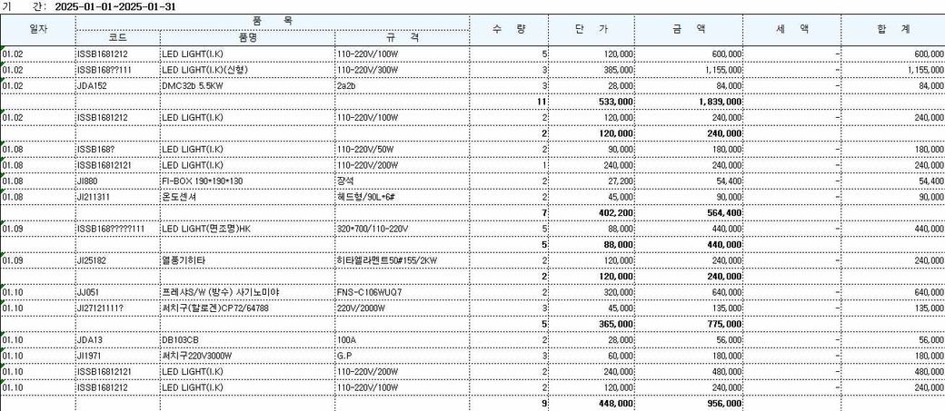 이런 내용의 엑셀파일을 판매원장이라고 주셨는데