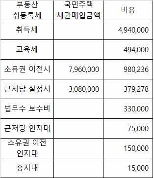 안녕하세요. 등기비용 예상금액 계산해 봤는데 대충 맞을까요? 법무사비는 최저가로 잡아봤습니다.