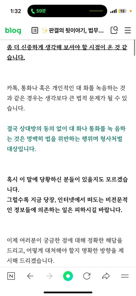 대화당사자 중 1인인 B가 그 대화를 녹음한 것은 불법은 아닙니다.