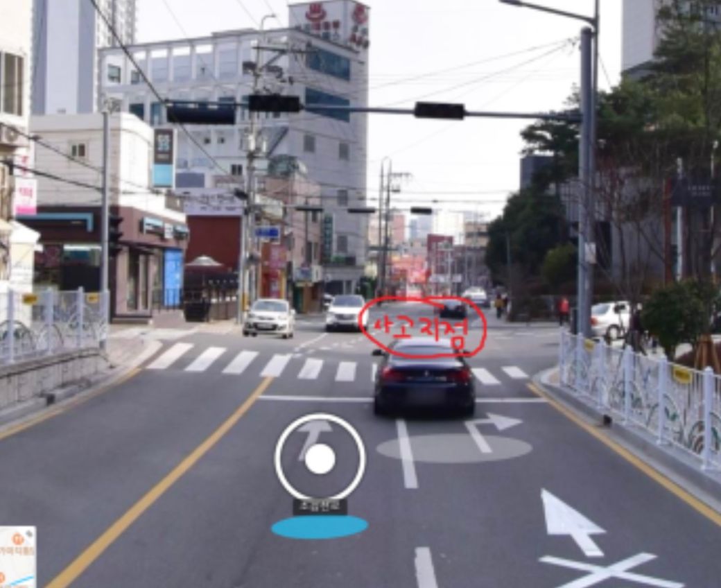 사고지점은 첫번째 횡단보도 지나서 2번째 횡단보도 진입전입니다