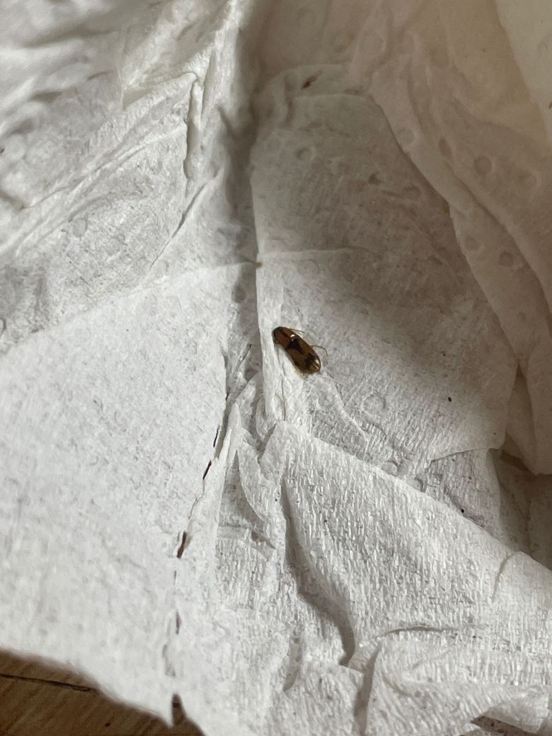 등껍질의 형태 그리고 다리모양 등에 얼룩등을 종합해 미루어 보건데 바퀴벌레종류의 하나로 어린 개체인 유충으로 보입니다.