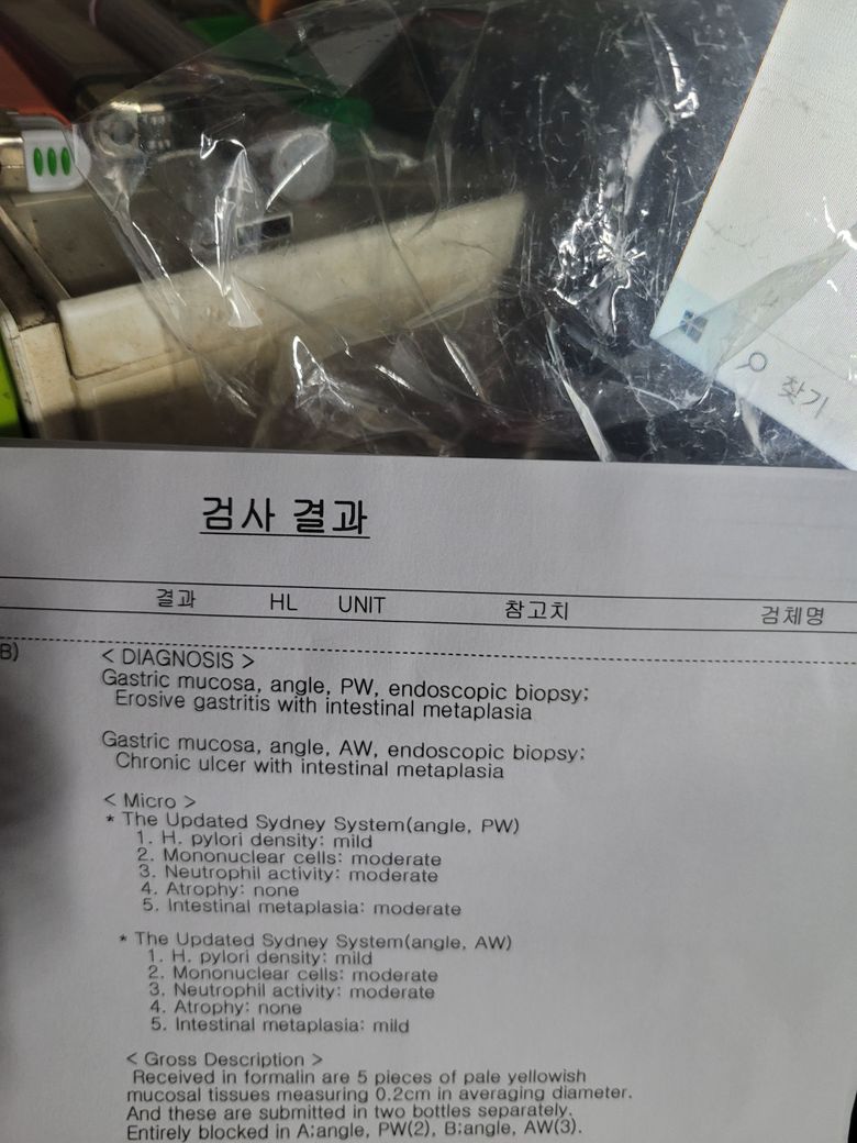 위 내시경 조직 검사 결과지 ,, 어떤 내용인지 알려주세요