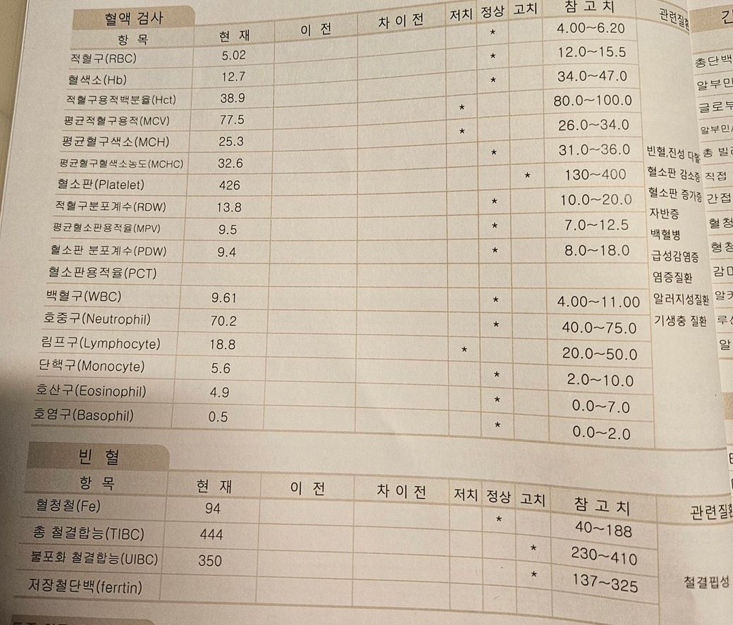문제는 집근처 큰 병원에서 혈액내과가 없어서 피검사를 못해준다고 하네요.
