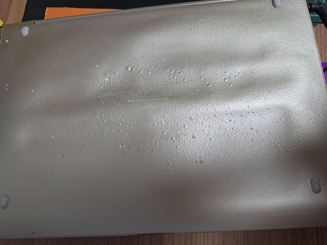 1.노트북 밑판에 기포가 사진처럼 많은데 왜이런건가요? 어떻게 해야하는지 해결방법