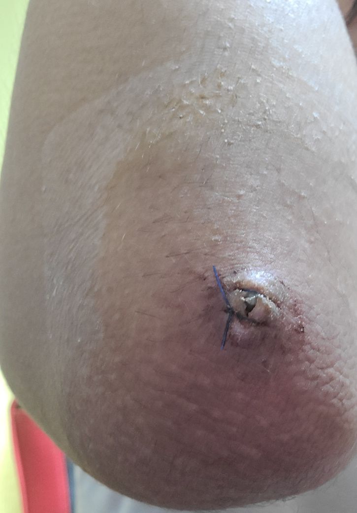 팔에 금속정 고정술을 했는데 첫번째 사진처럼 핀이 돌출이 되어 두번째 사진처럼 재봉합을 했습니다. 그래서 세번째 사진처럼 딱쟁이가 있었는데, 오늘 보니까 붕 떠있길레 때버렸더니 저렇게 되어있네요. 이거 잘 회복되어가고 있는건가요? 그리고 팔꿈치 부분이라서 그런가 팔을 90도이상 구부리려고 하면 봉합부위가 쓰라립니다. 이건 실밥을 제거하고 며칠 지나면 나아질까요?