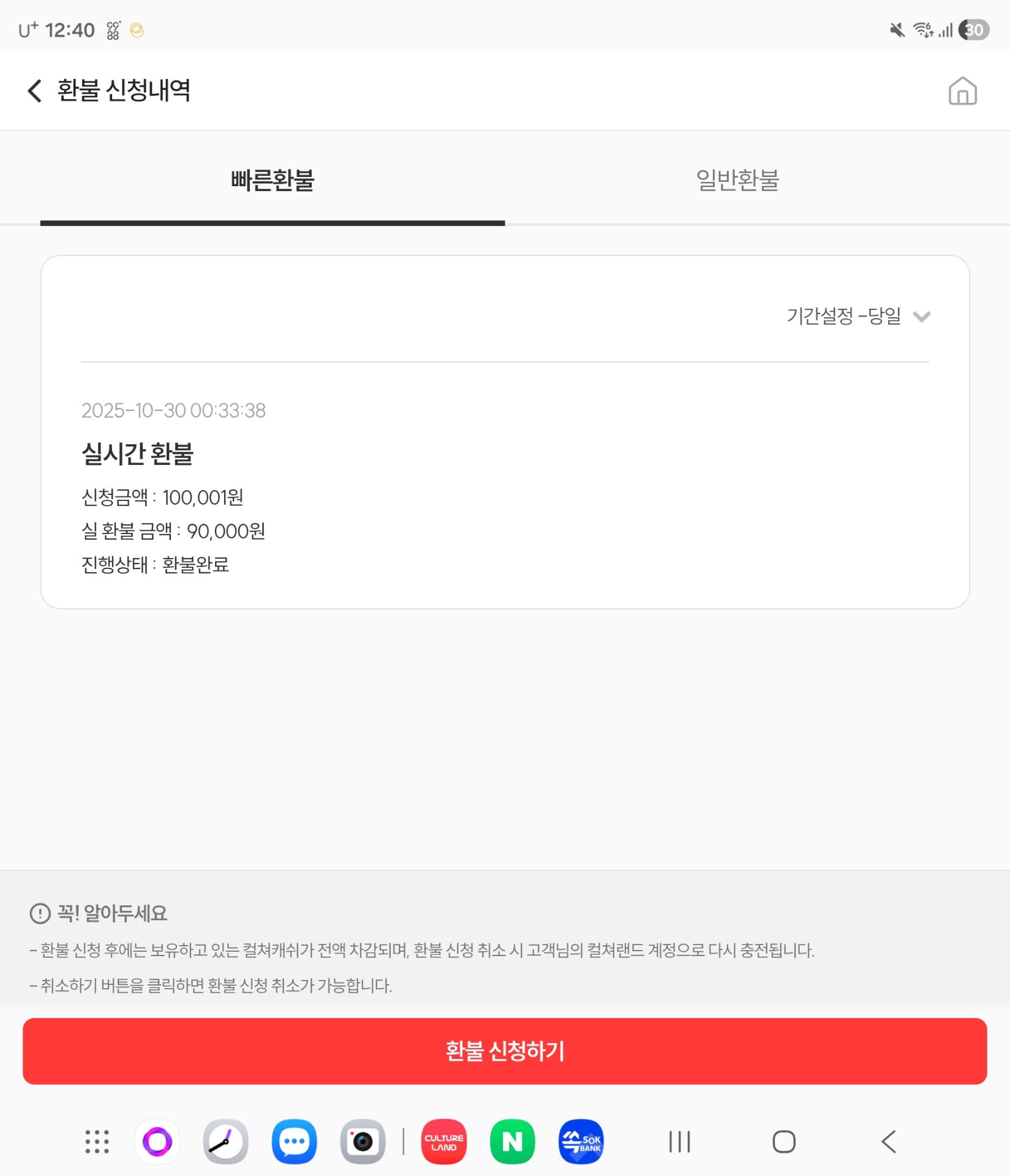 12시 33분에 실시간 환불신청을했는데 바로 입금이 안되네요 왜그럴까요 계좌번호다 맞게 했는데... 사진처럼 실시간환불 완료로 되어있는데 계좌에는 입금내역이 없어요