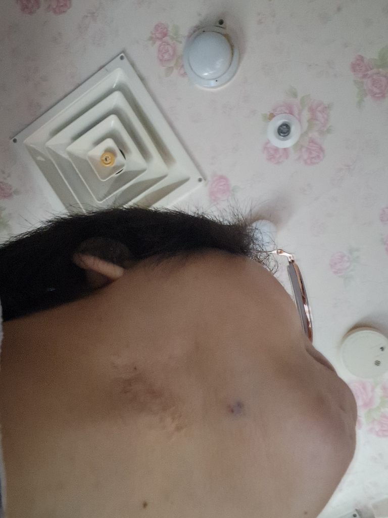 목 부위 결절에 대해 조직검사를 받으셨고 그로 인한 소리로 생각이 됩니다.