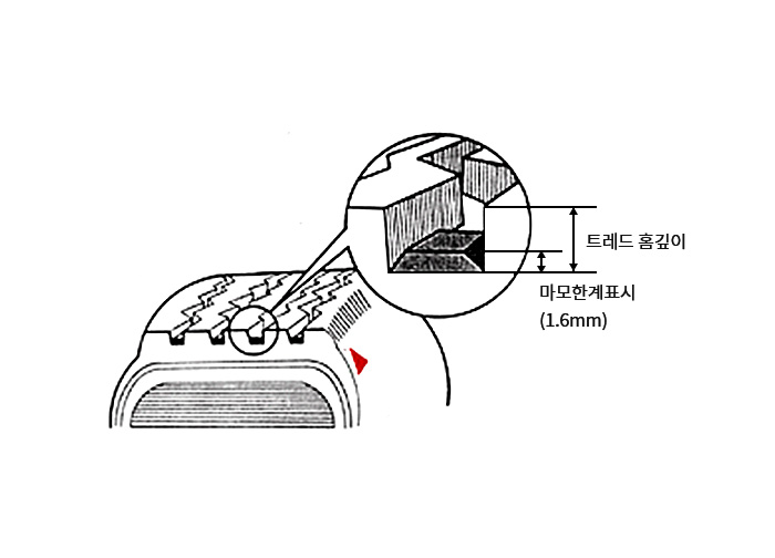 타이어의 마모한계표시인 마모한계선이 드러날 경우 교체하는 것이 가장 좋습니다.