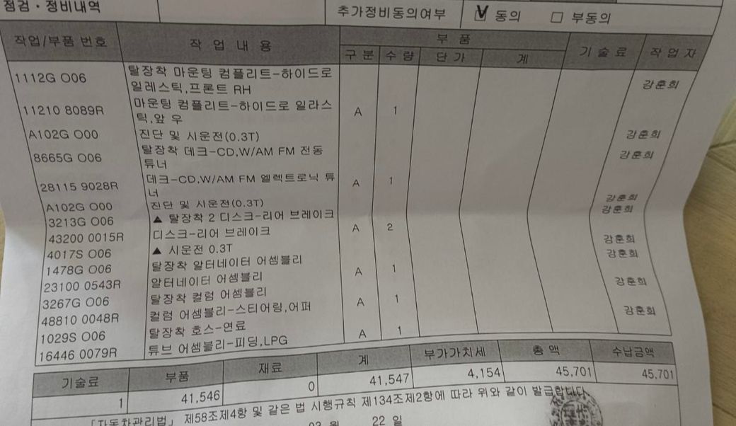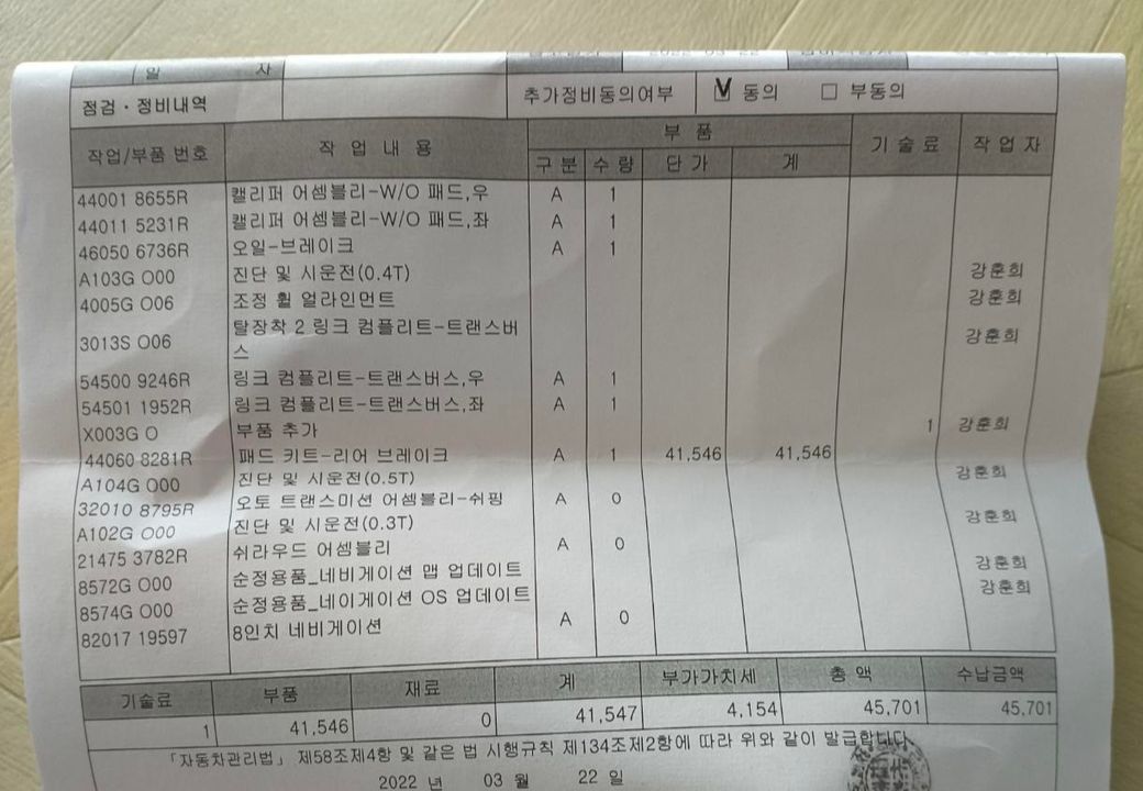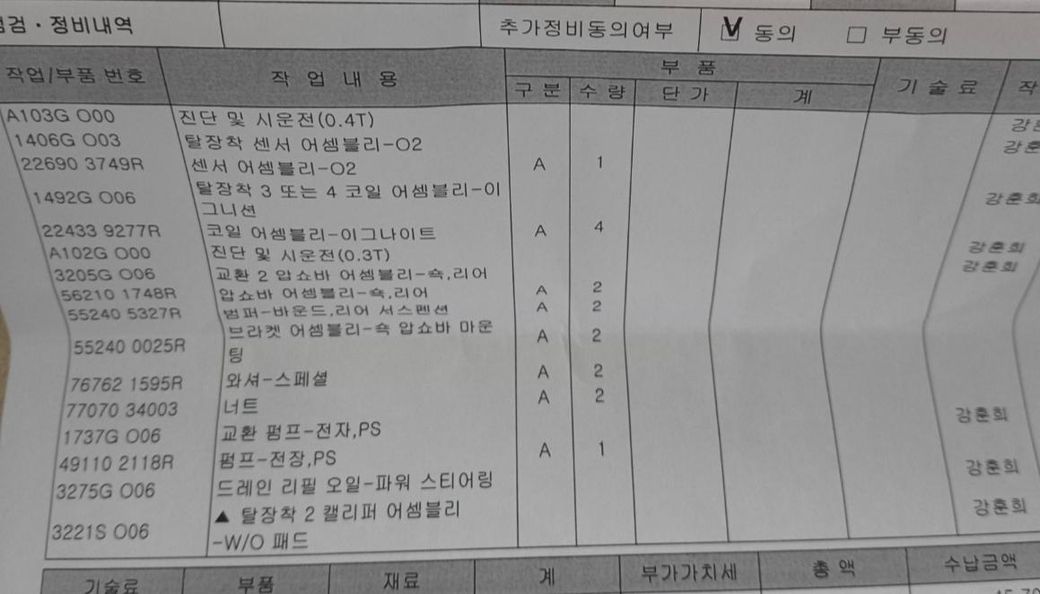 캘리퍼 어셈블리 좌우 교체 파워핸들 오일은 교환내역이 없네요