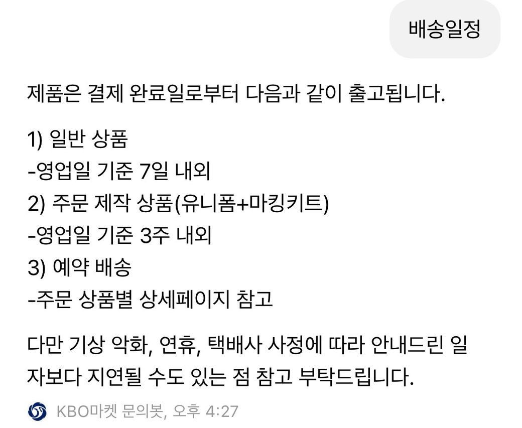문의봇은 유니폼+마킹키트 면 3주는 걸린다고 하는데