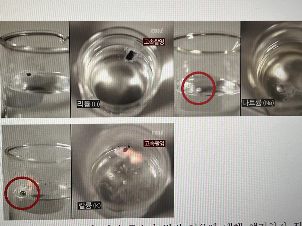 알칼리금속과 물의 반응 실험을 진행하는 중에 알칼리금속이 반응을 하기 시작하자마자 구 형태로 말아지는 것을 관찰할 수 있었습니다. 사진 자료가 남아있지 않아 ebs실험 사진으로 대체합니다. 리튬과 나트륨을 대상으로 실험을 진행했는데 리튬에서는 구 형태로 말아지는 현상이 나타나지 않았지만 나트륨에서는 관찰할 수 있었습니다. 혹시 리튬의 녹는점이 더 높기 때문일까요? 만약 맞다면 나트륨은 녹는점이 리튬에 비해 낮기때문에 표면장력에 의해 구 형태로 말아진 것일까요?