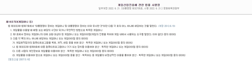 게임산업진흥에 관한 법률 시행령 제18조의3(게임머니 등) 대통령령을 해석하면