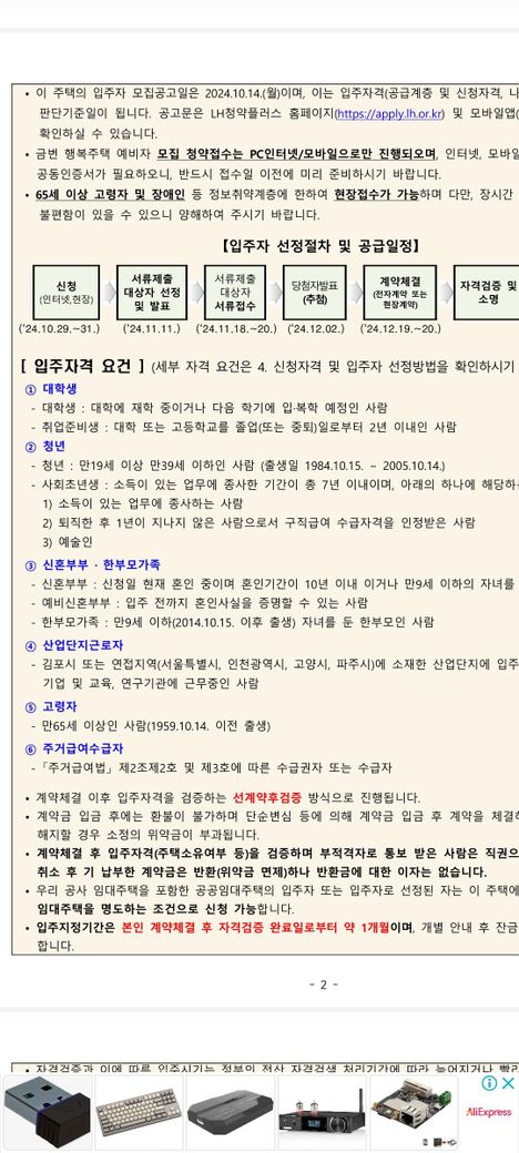 LH 공공임대 청년 임대 주택 조건 문의