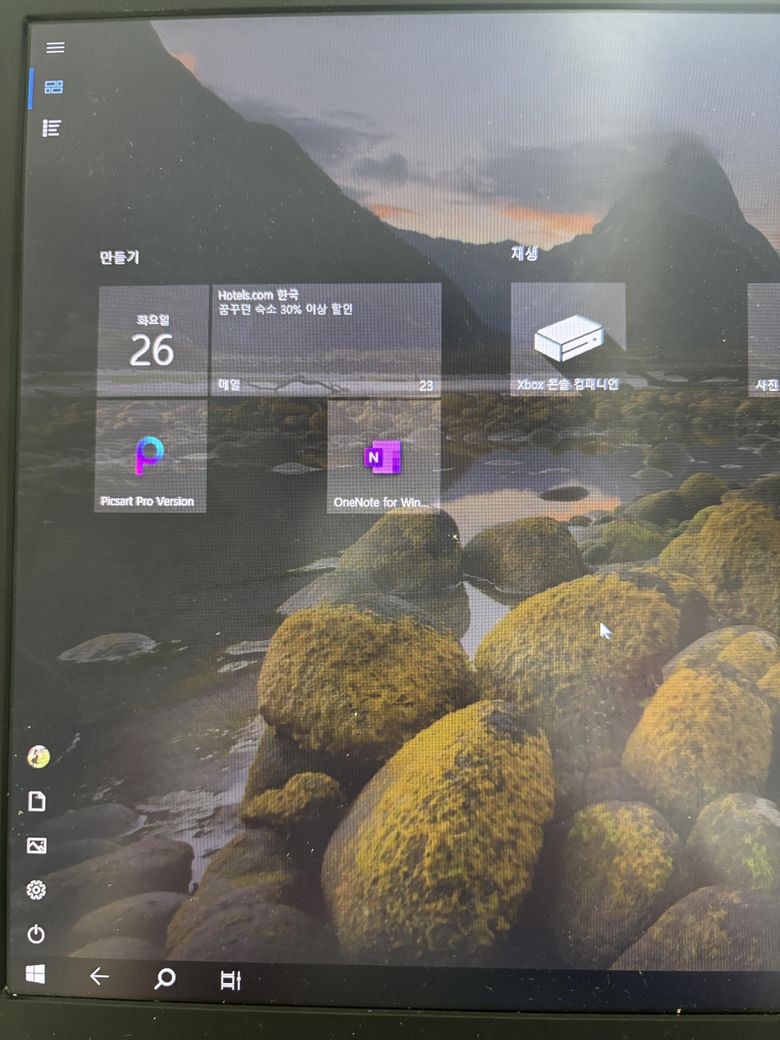 갑자기 오늘 지 혼자 업데이트되더니 화면이 사진처럼 고정된 타일인지 뭔지에서 움직이지도 않고 원래 배경화면에 있던 프로그램 아이콘들이 아예 안보여요,,,