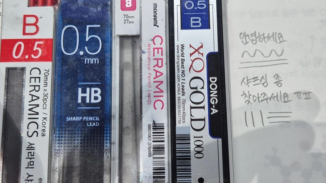 마지막 남은 샤프심인데 비교해 봐도 잘 모르겠어요