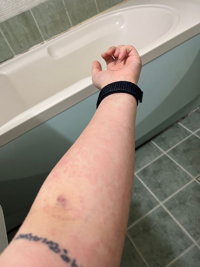 알러지 반응같은데 병원가서 진단받고 처방받으신 후 사수에게 경과보고 꼭 하시길 바랍니다.