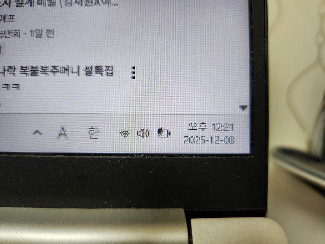 사진처럼 하면 하단이 미세하게 떨리거나 진동하듯 보이는 현상은 패널 자체 문제, 그래픽 드라이버 오류, 주사율 설정 문제 중에서 발생하는 경우가 많습니다.