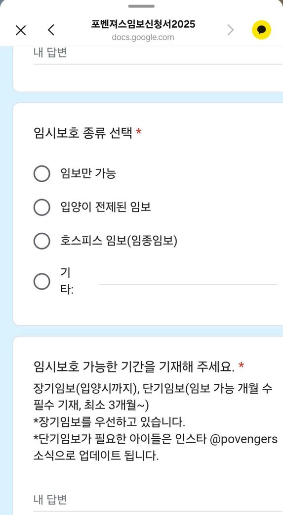 키우던 반려견을 또는 보내고 난 후 다시 키울 자신은 지금 없는데 그래도 불쌍한 아이를 보니까 임시 보호는 하고 싶고 만약 이 애가 임시 보호하다가 정이 들면 입양할 마음도 있습니다. 근데 100% 입양을 무조건 한다. 이거는 아닌데.