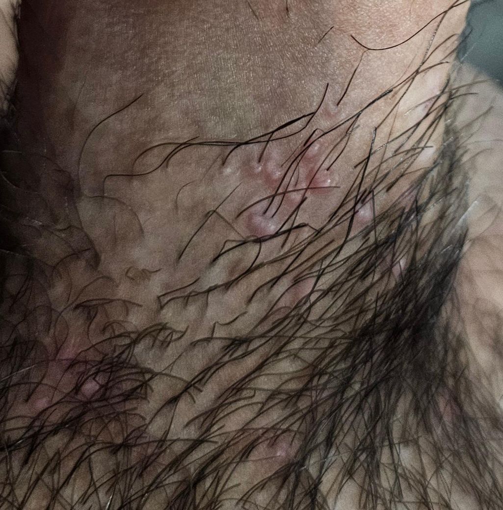 사진속 여드름같은게 생긴지 2주가 넘었는데 통증도 가려움도 없습니다. 마지막 관계는 25년 8월이었습니다. 이게 헤르패스인건가요? 알려주신다면 감사하겠습니다.