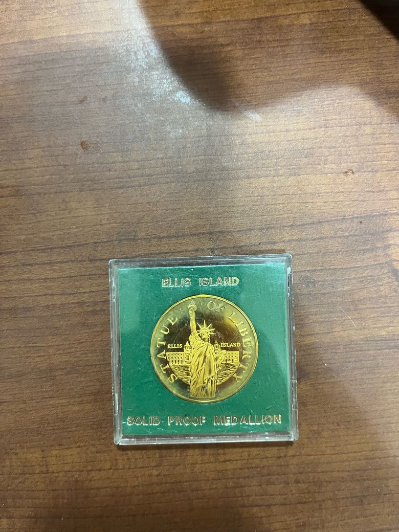 사진 상 보이는 메달은 엘리스 섬을 기념하는 것으로 자유의 여신상이 새겨진 메달입니다