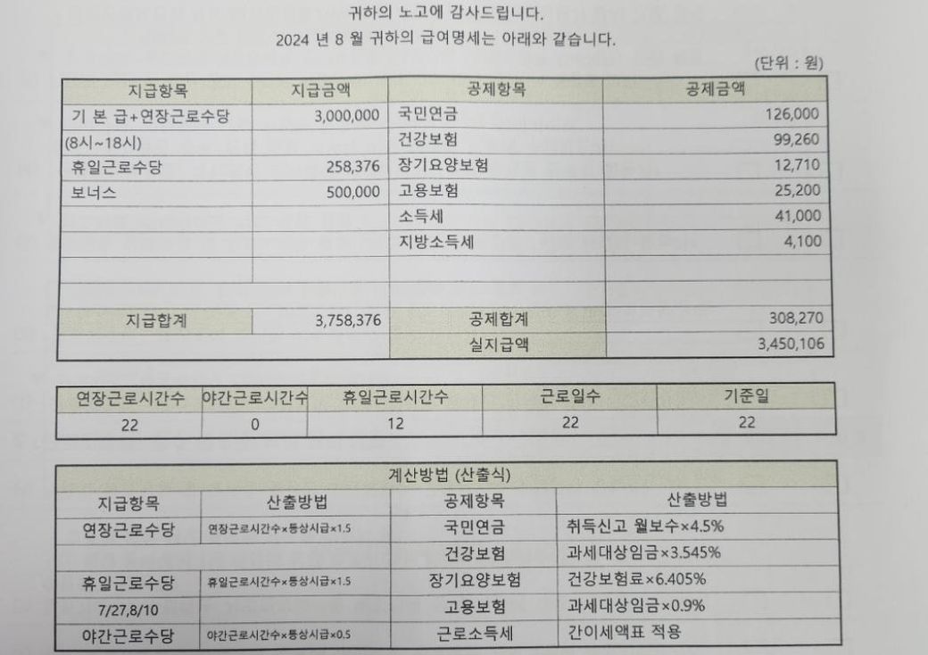 일단 급여명세서가 너무 이상합니다.