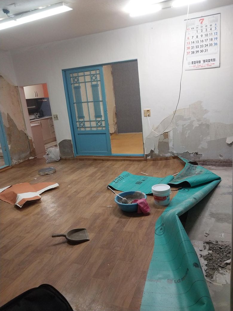 천장도 해야할것 같고 저 작은방도 곰팡이 삭 서려있는데 추가 단열작업 더 해야하는지