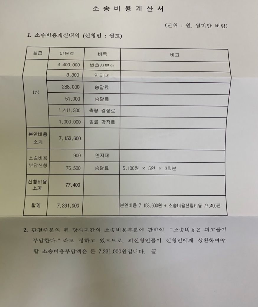 소송비용 부담에 관한 재판의 결과에 따라 정확한 금액이 산정되게 됩니다.