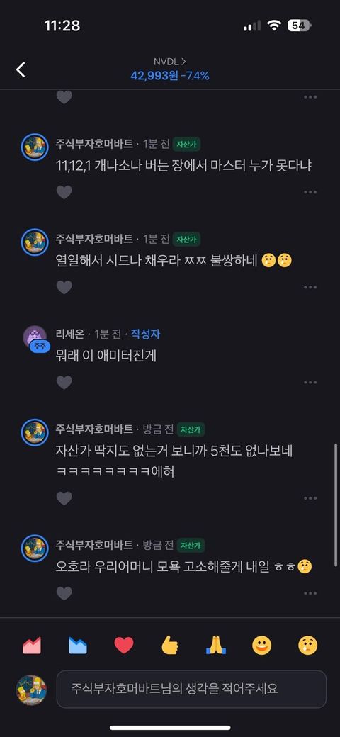 토스증권 NVDL종목 커뮤니티에서 "리세온"이라는 닉네임을 가진 사람이 저("주식부자호머바트")에게 다음과 같은 부모님 욕을 하였습니다.