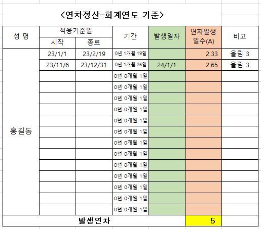 전년도 휴직자에 대한 올해 발생한 연차 일할계산 관련