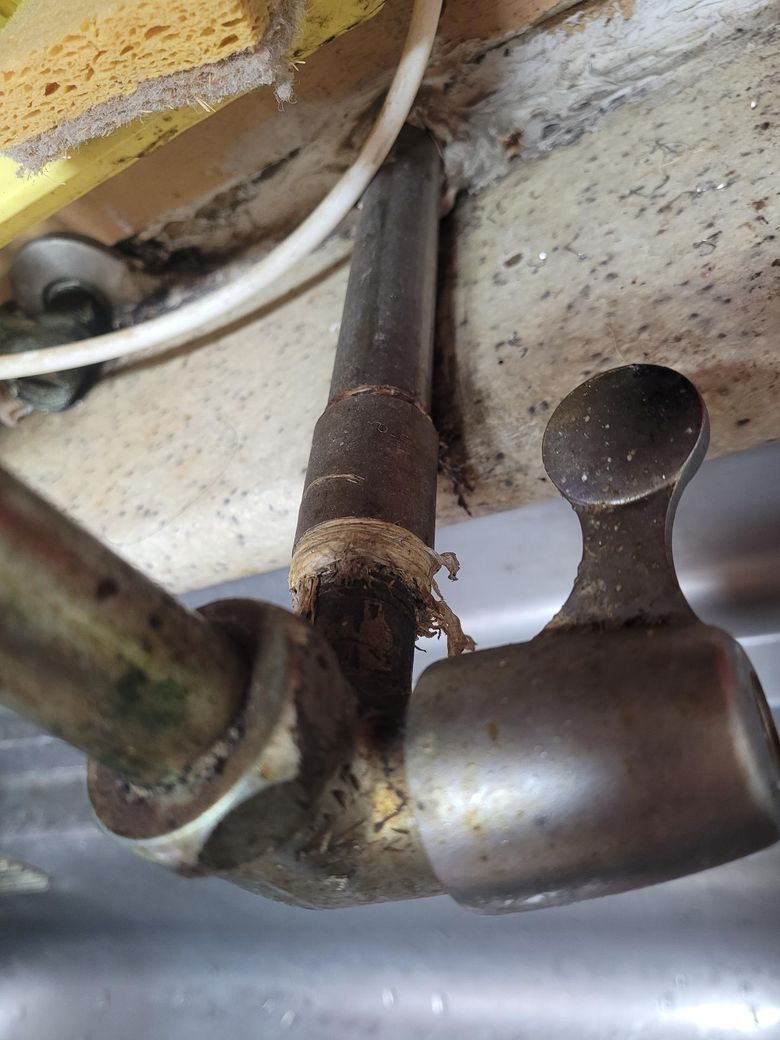 기존 수전 밑 연결 부위를 렌치로 풀어 분리합니다.