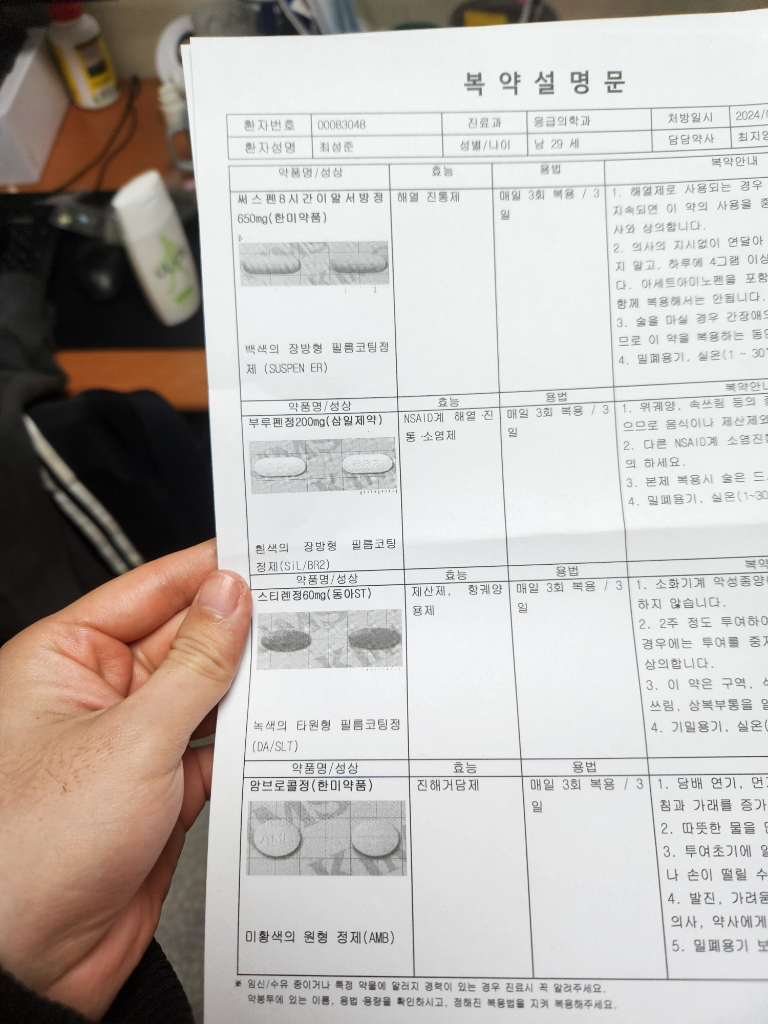 소염진통제, 부루펜이 속쓰림을 유발할 수 있습니다. 속쓰림 증상이 심하면 부루펜 빼고 드셔보시고 (스티렌이 위보호제 -> 이거 챙겨드세요) 통증은 타이레놀 위주로 조절하시면 도움이 될 것 같습니다.