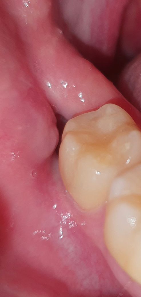 1.원래 붙어있던 볼쪽 잇몸이 치아와 떨어진것 같습니다.